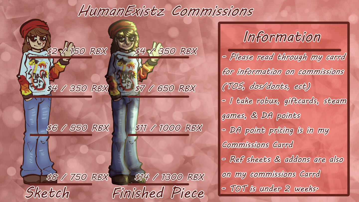 All pieces come with basic backgrounds unless requested otherwise(a charge may be added on if the background requested is overly complex)